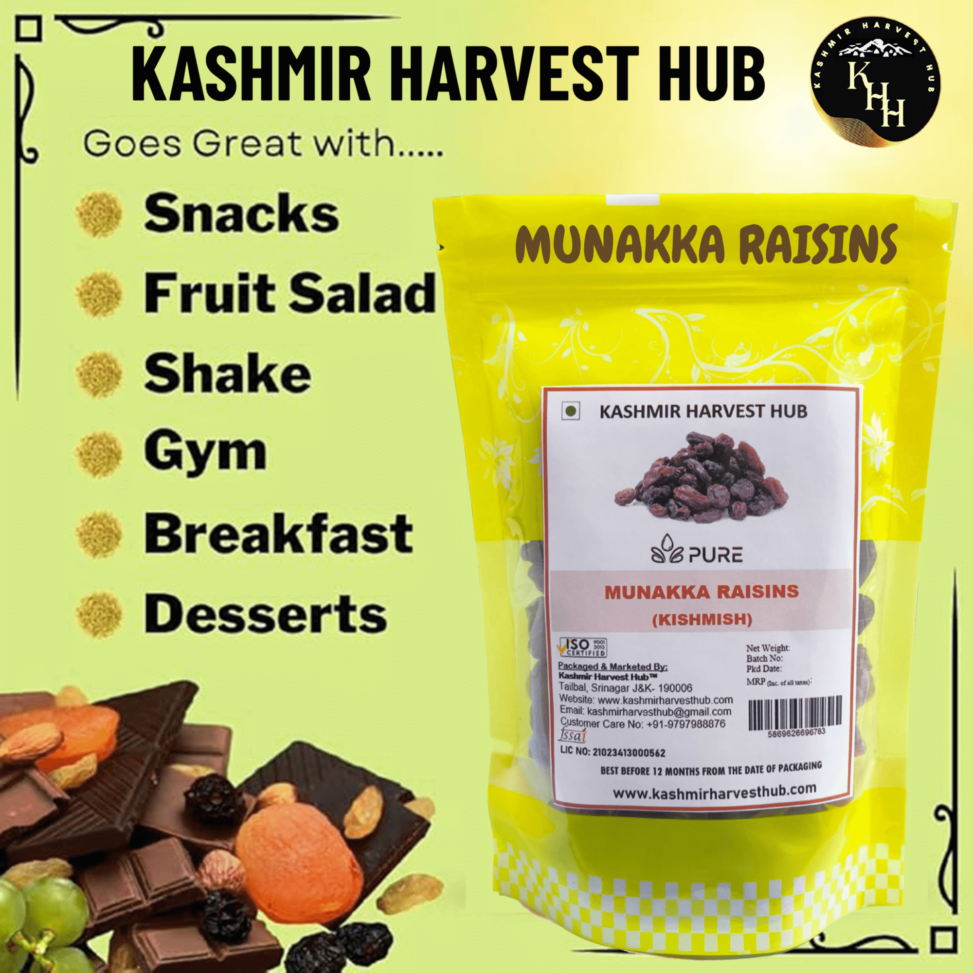 Kashmir Harvest Hub Kashmiri Munakka Raisins | 100% Natural, Pure & Premium Kishmish | Tasty & Healthy Abjosh | Dried | A++ Grade | Rich in Antioxidant & Iron